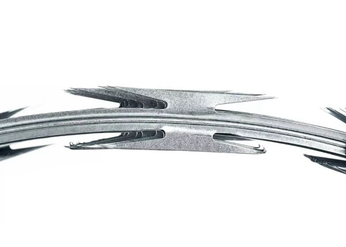 Razor Tape Wire also known as spikes wire is a kind of modern security fencing materials with better protection and fencing strength made of hot-dipped galvanized steel sheets or stainless steel sheetsCon hermosas y afiladas cuchillas y alambre de núcleo fuerte, el alambre de afeitar tiene las características de alta seguridad, fácil instalación, resistencia al envejecimiento y otras propiedades.